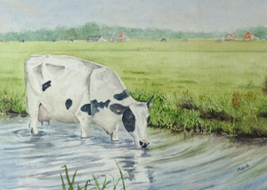 Koe staat in de sloot